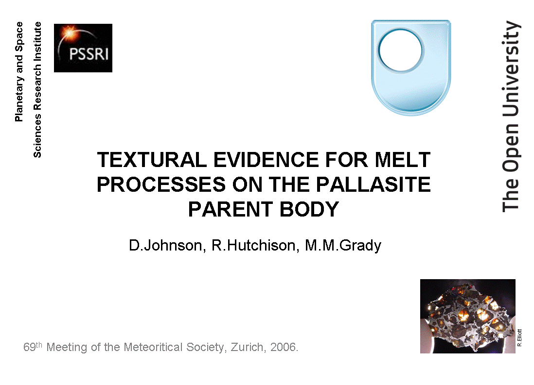 Textural Evidence For Melt Processes On The Pallasite Parent Body - D. Johnson, R. Hutchison, M.M. Grady (Incl. Hambleton Meteorite)